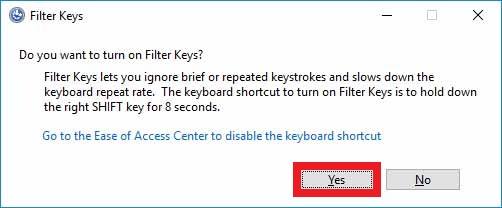 - Hold the Shift Key for around 8 seconds or until you hear a sound.